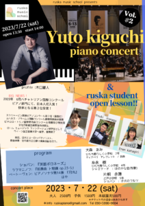 2023.7.22(土) 木口雄人さん yutokiguchi ピアノコンサートand ルスカstudent Open lesson ruskamusicschool vol.2 inルスカミュージックスクール でした! […]